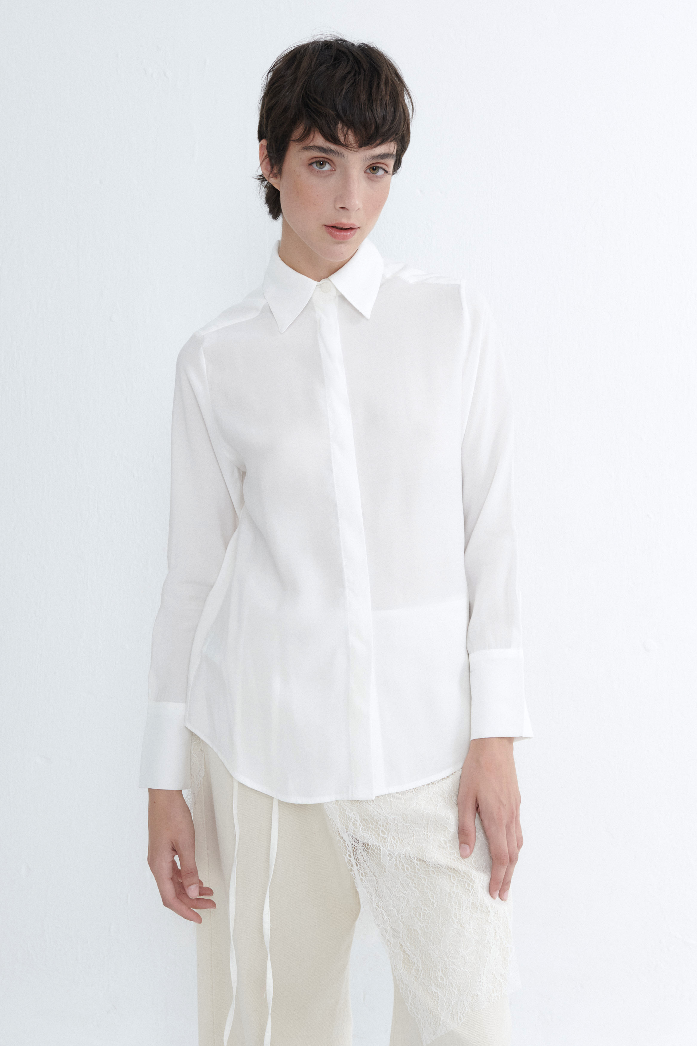 TIP: Una camisa de corte simple y detalles que enamoran. Su largo la hace combinable con todo pantalones tiro alto, medio o bajo. Por dentro o fuera de la cintura. Lookeala para noche o para una reunión laboral, el estilo se lo ponés vos. Combinala con sacos o sweaters donde puedas lucir sus bellos puños. Usala abierta con remeras o bralettes por debajo.