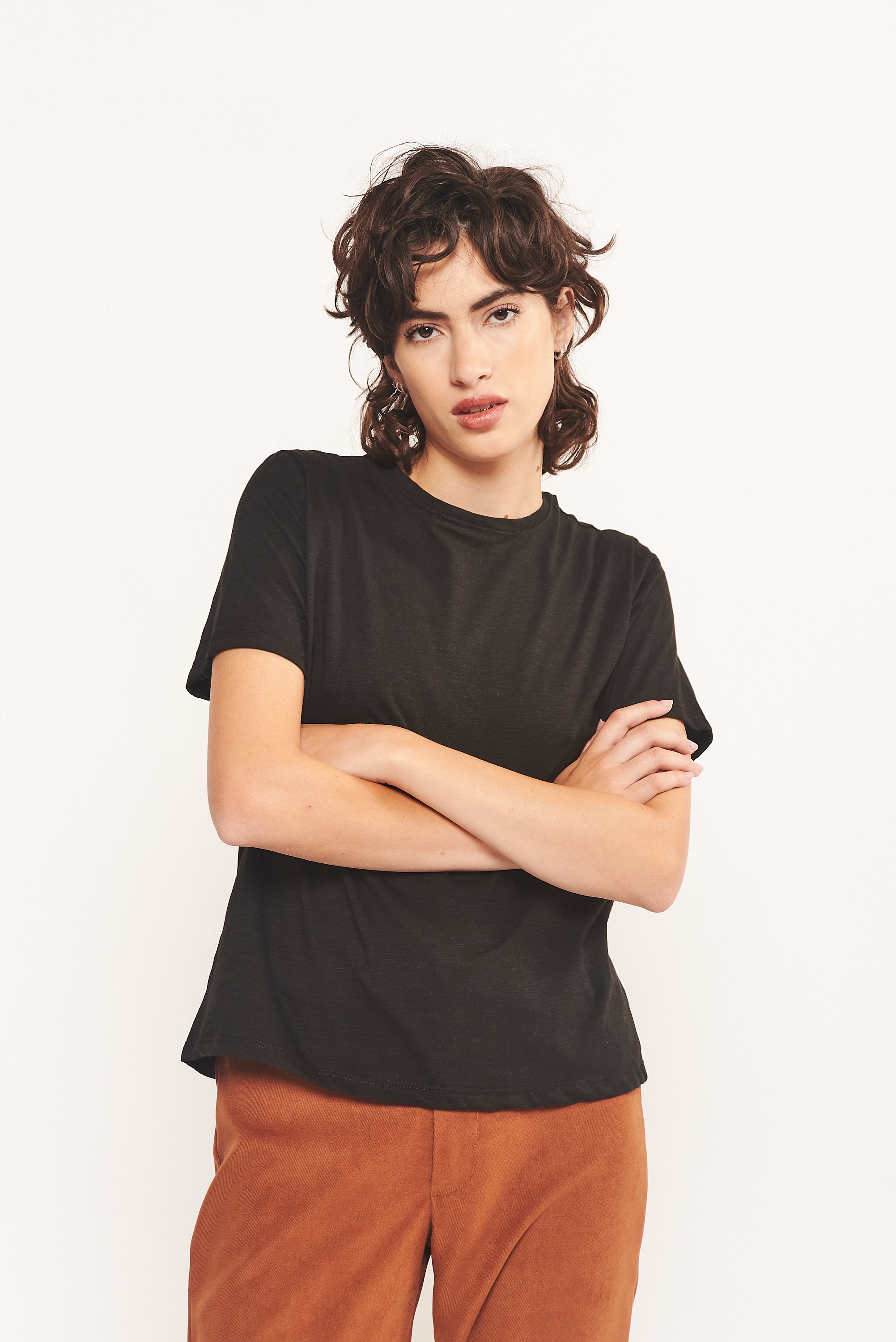 TIP: La básica que necesitas. Corte simple y telas del bien. Son ideales para informalizar prendas elegantes, como por ejemplo combinar con un conjunto de blazer y pantalón pinzado. Obvio es un básico que podes combinar literalmente con todo. Su escote cerrado me fascina para usa con collares cortos.