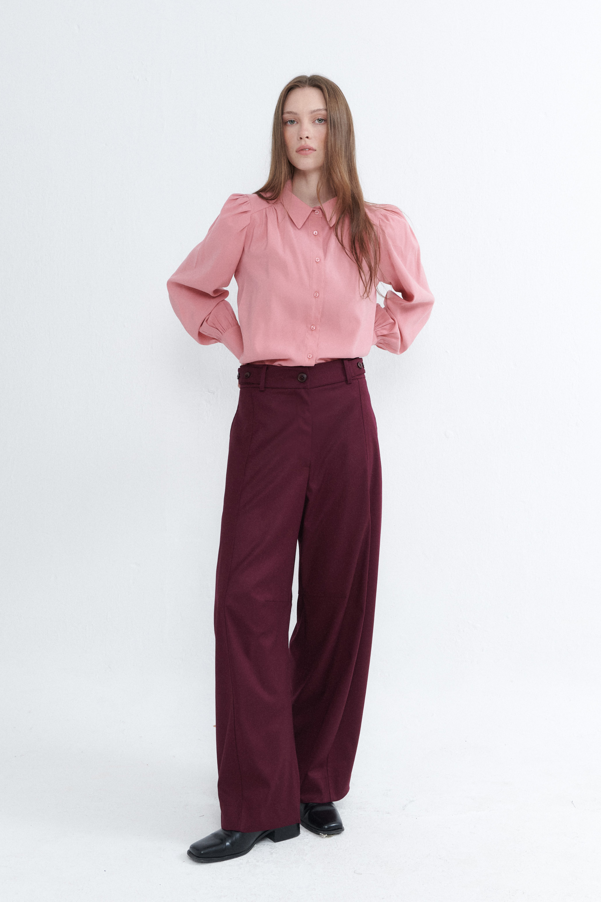 DESCRIPCIÓN: Camisa de tela símil cupro, súper suave y con cuerpo, frunces en delantero, mangas con frunces en copa y puños. Botones a tono. Fit recto, clásico.